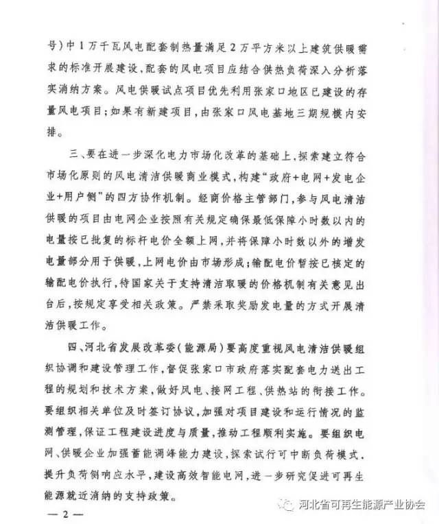 近日,國家能源局就河北省張家口2017年風(fēng)電清潔供暖示范有關(guān)事項進行了復(fù)函,認為張家口適宜利用風(fēng)電進行分布式供暖。文件中提到,2017年張家口啟動尚義縣、懷來縣、崇禮區(qū)、經(jīng)開區(qū)509萬平方米的風(fēng)電供暖試點。項