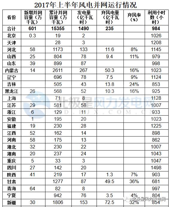 2017年上半年風(fēng)電并網(wǎng)運(yùn)行情況