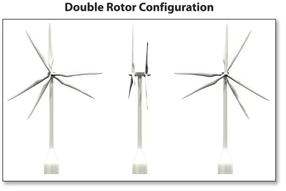據(jù)Airgenesis透露,該雙轉(zhuǎn)子風(fēng)電機組的設(shè)計方案使用兩個風(fēng)輪直徑相同的轉(zhuǎn)子,兩個風(fēng)輪的相位角偏差30°。