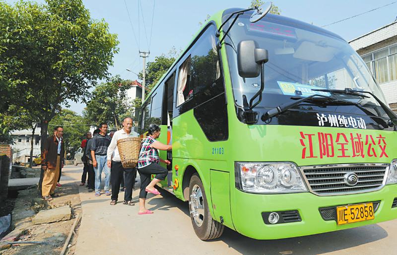瀘州市江陽區(qū)泰安鎮(zhèn),村民乘坐純電動(dòng)公交車。