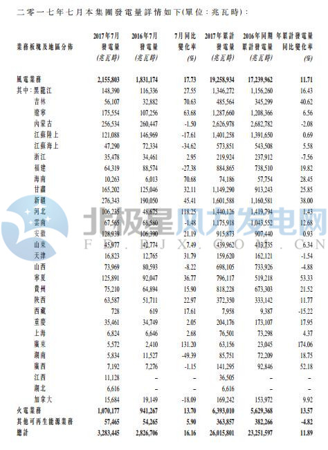 龍源電力今年7月風(fēng)電發(fā)電量達(dá)2155803兆瓦時,同比增長17 73%。以下為具體情況: