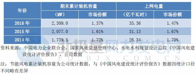 2014-2016年節(jié)能風(fēng)電在全國(guó)風(fēng)力發(fā)電行業(yè)的市場(chǎng)份額情況