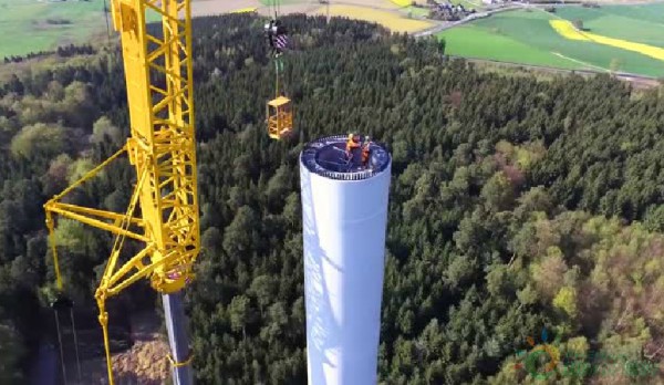 科技干貨一:陸地230米高度混合塔架風(fēng)電機(jī)組吊裝。 Nordex公司在德國(guó)萊茵蘭—普法爾茨州(Rhineland-Palatinate)的Hausbay風(fēng)電場(chǎng)安裝了世界上最高的風(fēng)電機(jī)組。該N131-3300機(jī)組的輪轂高度為164米,風(fēng)