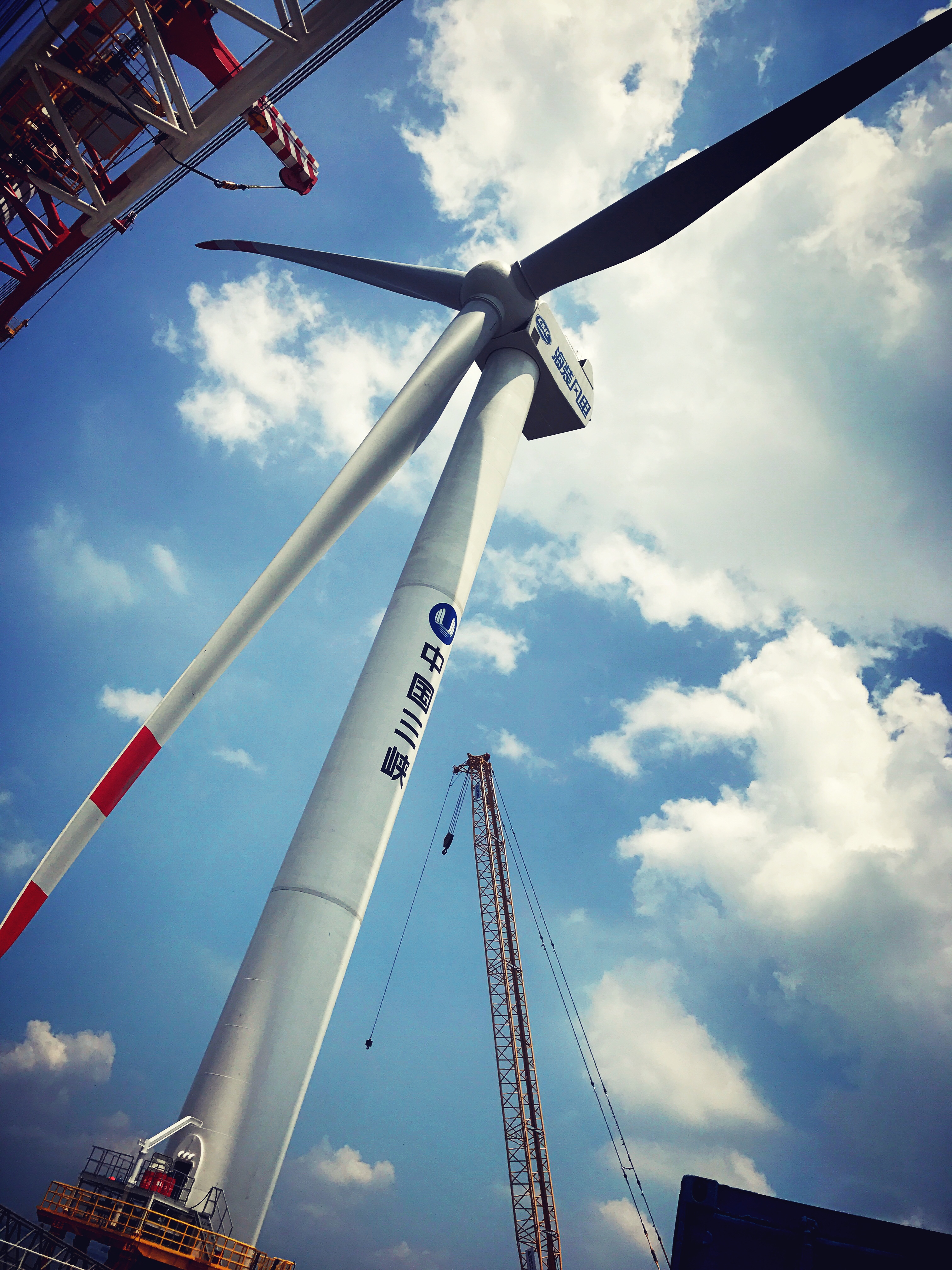 在福清興化灣海上風(fēng)電樣機試驗風(fēng)場Y2號施工平臺上,近一年沒回家的海峽發(fā)電公司副總經(jīng)理隋奎芳指著樣機告訴記者,“7月25日,樣機試驗風(fēng)場首臺風(fēng)機成功吊裝;8月21日,第二臺風(fēng)機完成吊裝。第一臺風(fēng)機吊裝我們安裝了10多天,第二臺風(fēng)機吊裝時間基本和陸地差不多,用時兩天半,目前兩臺海上風(fēng)機正緊張開展送電及調(diào)試工作。9月中旬,首批3臺海上風(fēng)機將并網(wǎng)發(fā)電;10月,14臺風(fēng)機全部安裝完成”。