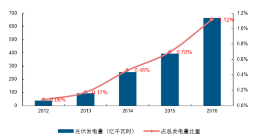 國(guó)內(nèi)光伏發(fā)電占總發(fā)電量比重持續(xù)上升