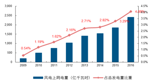 國(guó)內(nèi)風(fēng)電發(fā)電占總發(fā)電量比重持續(xù)上升
