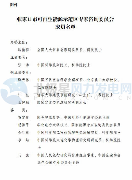 國(guó)家發(fā)改委公布張家口市可再生能源示范區(qū)專家咨詢委員會(huì)名單(附通知)