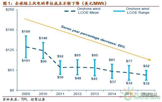 全球風(fēng)電度電成本下降帶動(dòng)風(fēng)電裝機(jī)發(fā)展