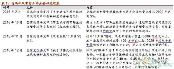 在2016年11月,國(guó)家能源局發(fā)布的《風(fēng)電發(fā)展“十三五”規(guī)劃》,規(guī)劃“十三五”期間,風(fēng)電新增裝機(jī)容量 8000 萬千瓦以上。若按5年80GW來看,則發(fā)展速度和每年增量偏低。風(fēng)電產(chǎn)業(yè)受政策影響較大,此次指導(dǎo)意見提振了市場(chǎng)投資預(yù)期。