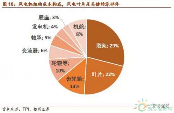 從風(fēng)電機(jī)組的成本構(gòu)成來看,風(fēng)電葉片的成本占比達(dá)到20%。估計(jì)風(fēng)電葉片目前每年的市場(chǎng)規(guī)模約為150-200億元。