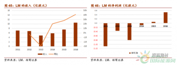 LM風(fēng)能:是全球最大的風(fēng)機(jī)葉片企業(yè),也是全球唯一將葉片設(shè)計(jì)和生產(chǎn)進(jìn)行整合的公司。近幾年,LM的收入有較快增長(zhǎng),2016年達(dá)到10.6億歐元,凈利潤(rùn)情況表現(xiàn)更優(yōu),開始大幅盈利,2016年達(dá)到0.5億歐元。公司的利息、折舊與攤銷費(fèi)用較高。