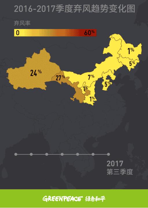 官方統(tǒng)計(jì)數(shù)據(jù)顯示,包括內(nèi)蒙古、黑龍江、吉林和遼寧等省份在內(nèi),2016年一季度到2017年三季度,全國多數(shù)省區(qū)棄風(fēng)率呈大幅下降趨勢,內(nèi)蒙古、黑龍江、吉林和遼寧等省區(qū)降幅最為顯著。