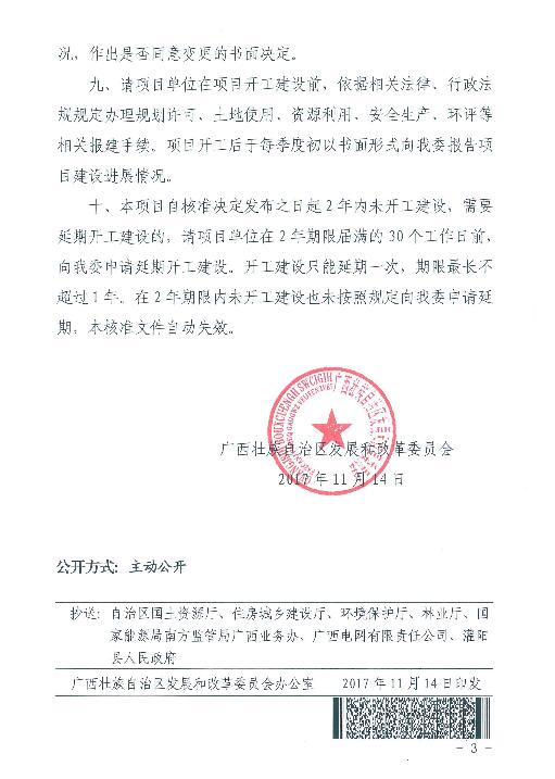 近日廣西壯族自治區(qū)發(fā)改委核準(zhǔn)了灌陽南江風(fēng)電場工程,項(xiàng)目單位為桂林富興能源投資開發(fā)有限公司,項(xiàng)目建設(shè)地點(diǎn)位于灌陽縣西山鄉(xiāng)觀音閣鄉(xiāng)一帶山地,建設(shè)容量為50MW,總投資9323萬元。以下為批復(fù)原文:
