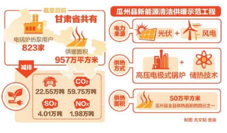 基于這一政策,國網(wǎng)甘肅電力積極推廣電能替代,截至目前,甘肅省共有電鍋爐熱泵用戶823家,用電容量48.49萬千瓦,年用電量6.23億千瓦時,供暖面積957萬平方米。通過清潔取暖,減少燃煤使用22.55萬噸,減排二氧化碳59.75萬噸、二氧化硫4.01萬噸、氮氧化物1.98萬噸。