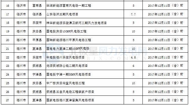 2017年度山東省風(fēng)電開發(fā)建設(shè)方案項目核準(zhǔn)情況公示(截止12月17日)