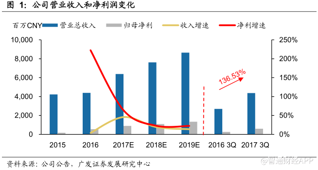 公司2017年前三季度共實(shí)現(xiàn)收入43.41億元人民幣,同比大幅增長(zhǎng)62.16%。與此同時(shí),公司實(shí)現(xiàn)凈利潤(rùn)為5.93億元人民幣,同比增長(zhǎng)136.53%。公司收入增長(zhǎng)主要是由風(fēng)電業(yè)務(wù)和燃?xì)鈽I(yè)務(wù)帶來(lái)的貢獻(xiàn),三季度風(fēng)電發(fā)電量超出預(yù)期,燃?xì)饬闶蹣I(yè)務(wù)表現(xiàn)突出,我們預(yù)計(jì)四季度隨著供暖需求增加,天然氣業(yè)務(wù)有望驅(qū)動(dòng)盈利持續(xù)增長(zhǎng)。