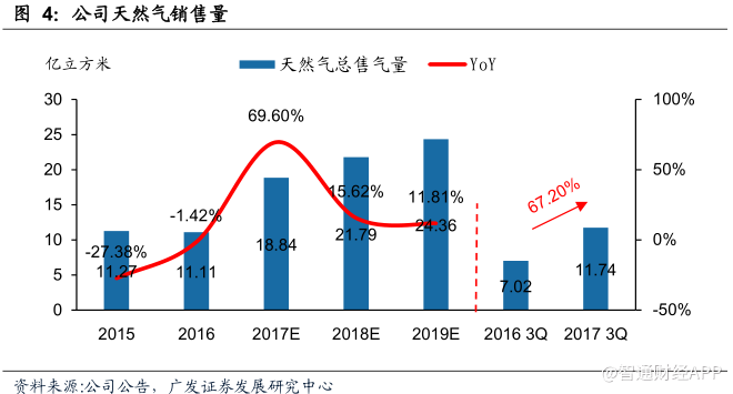 截止2017年九月底,公司累計(jì)實(shí)現(xiàn)天然氣售氣量11.74億立方米,同比增長(zhǎng)67.2%,其中天然氣批發(fā)量為6.44億立方米,同比增加29.73%,天然氣零售量4.74億立方米,同比增加210.32%。零售業(yè)務(wù)的回暖主要得益由于“煤改氣”集中供暖以及沙河地區(qū)工業(yè)企業(yè)用氣量的恢復(fù)。近期沙河地區(qū)非用天然氣為燃料的部分玻璃企業(yè)停產(chǎn)整頓,而公司的玻璃企業(yè)客戶(hù)都是用天然氣為燃料的,將會(huì)受益于環(huán)保整頓,用氣會(huì)進(jìn)一步增長(zhǎng)。