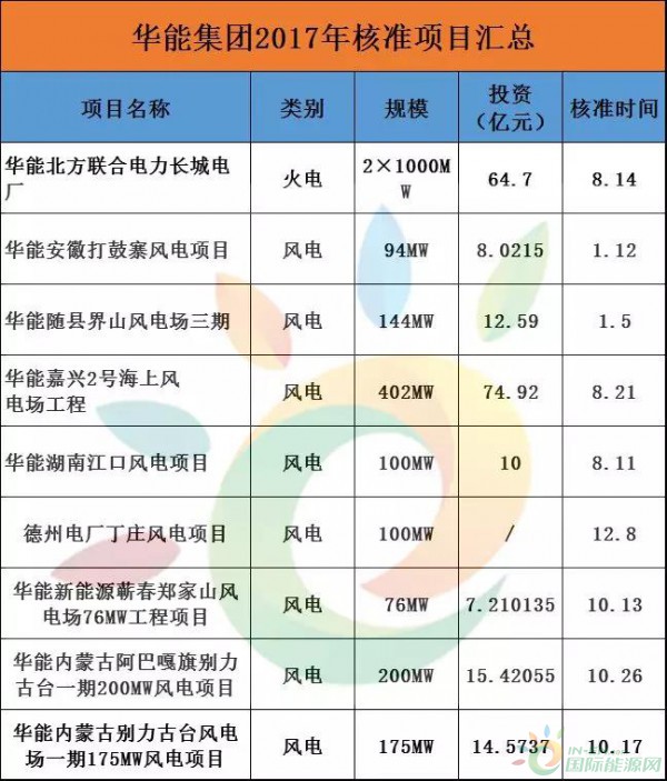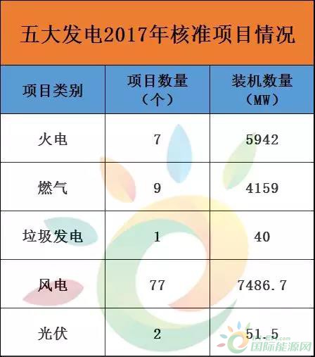 下面是五大發(fā)電集團(tuán)2017年所核準(zhǔn)項目的具體情況: