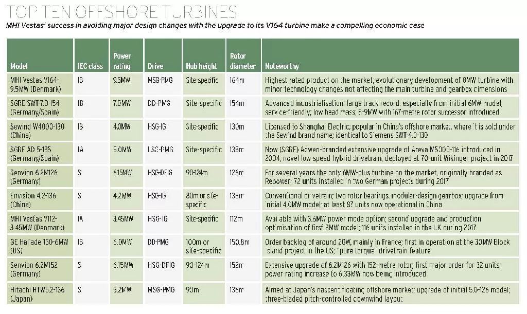 2017年全球最佳海上風(fēng)電機(jī)組top10榜單