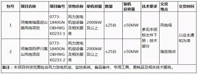 【招標】協(xié)合新能源河南兩風電項目共計100MW風電機組采購招標公告