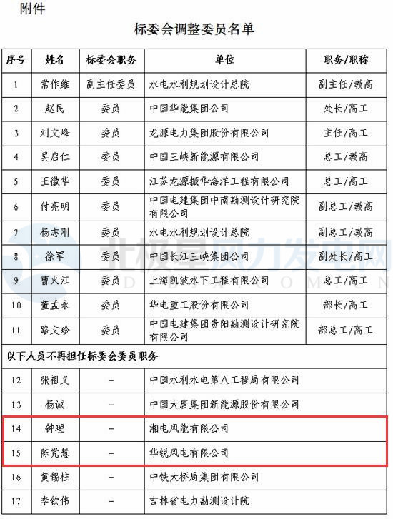 風(fēng)電標(biāo)委會(huì)部分委員調(diào)整 涉及4家整機(jī)商(附原文)