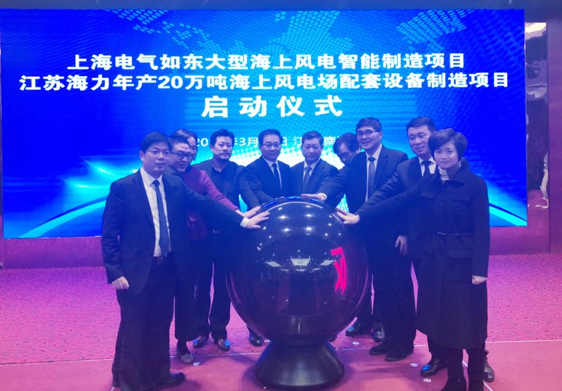 3月20日, 上海電氣如東大型海上風(fēng)電智能制造項(xiàng)目啟動(dòng)儀式在江蘇如東隆重舉行。這標(biāo)志著如東縣、上海電氣、海力三方正式揭開(kāi)了如東海上風(fēng)電