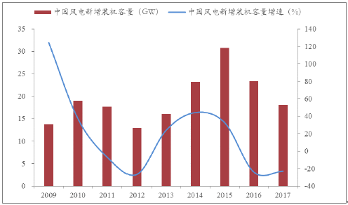 2011-2012年,經(jīng)過多年爆發(fā)式發(fā)展,我國棄風(fēng)限電現(xiàn)象明顯,2011和2012年棄風(fēng)率分別達到16.23%和17.12%,棄風(fēng)開始成為制約風(fēng)電行業(yè)發(fā)展的重要因素。2013-2015年,一方面棄風(fēng)限電現(xiàn)象有所好轉(zhuǎn),另一方面受2015年以后并網(wǎng)風(fēng)電標桿電價下調(diào)的影響,2015年出現(xiàn)強烈的搶裝潮,新增裝機30.75GW,為歷年新高。