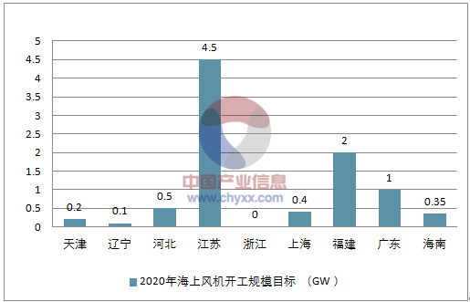 2020年海上風(fēng)機開工規(guī)模目標 (GW )