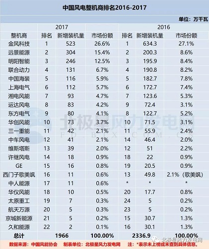 值得收藏!2010-2017年風(fēng)電整機(jī)商排名及分析都在這里了!
