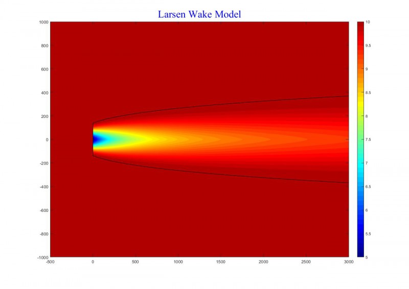 目前,機(jī)位排布主要通過經(jīng)驗(yàn)公式計(jì)算尾流場分布,不同的經(jīng)驗(yàn)公式計(jì)算得出的尾流場有極大偏差。下圖為Jensen尾流模型與Larsen尾流模型計(jì)算得出的尾流場分布,呈現(xiàn)出了不同的結(jié)果。經(jīng)驗(yàn)公式所描繪的尾流場分布與海上風(fēng)場實(shí)際尾流分布不一致是導(dǎo)致風(fēng)場實(shí)際發(fā)電量與計(jì)算發(fā)電量偏差較大的主要原因。