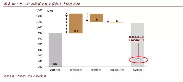 若加上9月政府工作目標(停建35GW+緩建55GW),則還有238GW可建設(shè)。我們預(yù)計要達到十三五停建緩建150GW的目標,在2018~2020年仍需喊停約38GW項目,而如果要達到2020年小于1100GW的目標需要再停23GW的項目(已經(jīng)包含20GW的淘汰落后產(chǎn)能關(guān)停計劃)