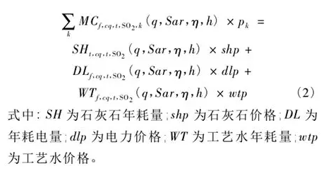 石灰石一石膏法脫硫的物耗包括石灰石耗量、電力耗量及工藝水耗量,計算見式(2):