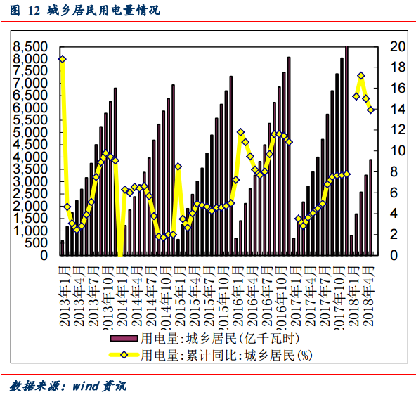 經(jīng)濟穩(wěn)中向好帶動能源需求較快增長,煤炭、電力、天然氣等能源品種消費量顯著增加。其中電力方面,數(shù)據(jù)顯示,1~5 月,全國全社會用電量 2.66 萬億千瓦時,同比增長 9.75%,增速較去年同期提高 3.4 個百分點。5 月份,高溫天氣提前到來,當月全社會用電量 5533.9 億千瓦時,同比增長 11.4%,增速同比提高 6.4 個百分點。