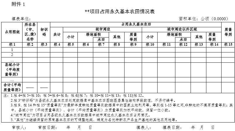 附件:1. **項目占用永久基本農(nóng)田情況表