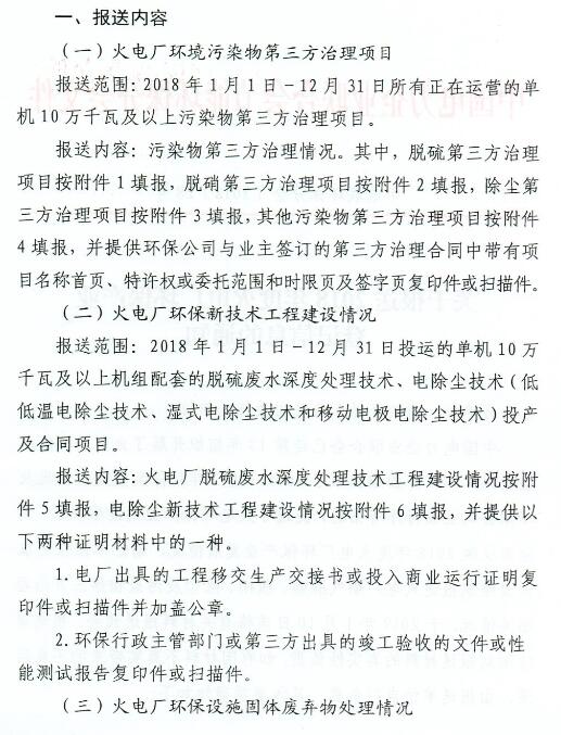 報送范圍:2018年1月1日-12月31日所有正在運營的單機(jī)10萬千瓦及以上污染物第三方治理項目。