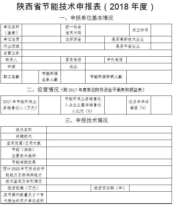 附件:1. 陜西省節(jié)能技術(shù)申報表(2018年度)