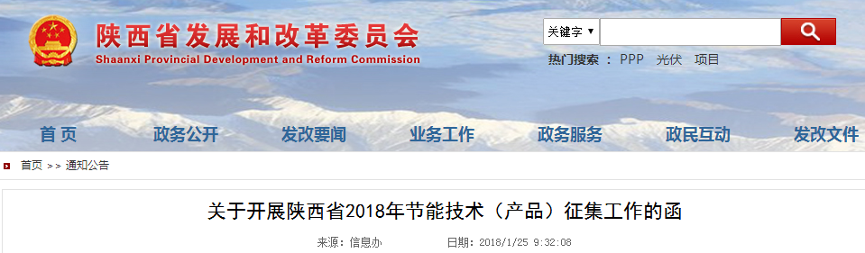 陜西省2018年節(jié)能技術(shù)(產(chǎn)品)征集工作