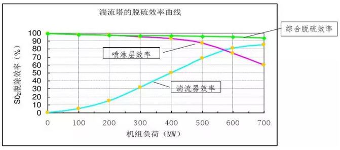 (煙氣入口SO2為2500mg/Nm3的600MW機(jī)組系統(tǒng)的脫硫效率曲線)