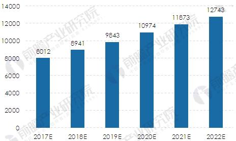 2017-2022年我國燃?xì)獍l(fā)電裝機(jī)容量規(guī)模預(yù)測(單位:萬千瓦)