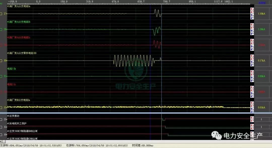 但是如果將高廠變高壓側(cè)的電流反轉(zhuǎn)180°,那么就不會動作,從而驗證了高廠變極性接反。
