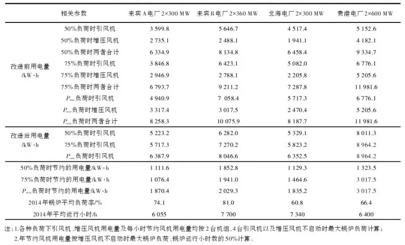 由上述結(jié)果可見,對(duì)設(shè)有脫硫增壓風(fēng)機(jī)且鍋爐引風(fēng)機(jī)全壓有足夠裕量的火電廠,特別對(duì)以調(diào)峰為主的廣西區(qū)內(nèi)火電廠,增設(shè)增壓風(fēng)機(jī)煙氣旁路所取得的經(jīng)濟(jì)效益及社會(huì)效益較大。