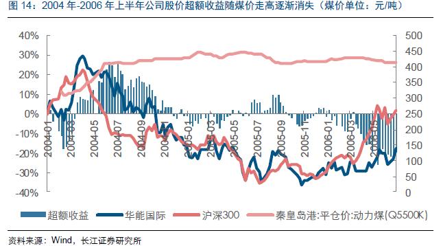 (2)2012年-2014年上半年:煤價(jià)下行時(shí)超額收益顯著