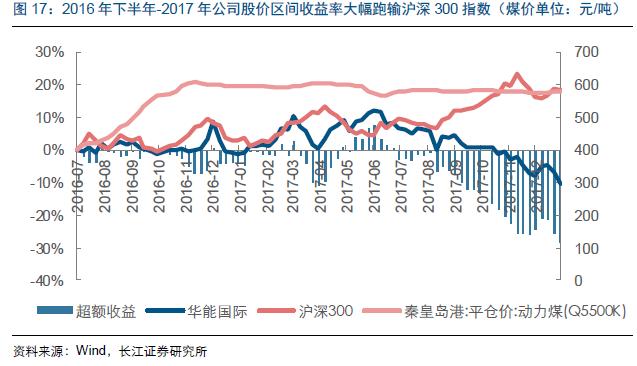 (3)2016年下半年-2017年:大幅上漲的煤價(jià)與“雖遲但到”的股價(jià)走弱
