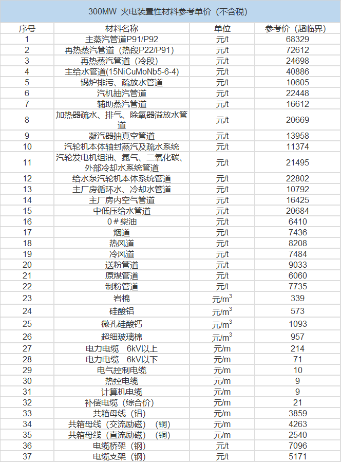 你想知道的火電裝置性材料價格全在這里了(來源:造價與財評 作者:渝杭動力)燃機電廠相關(guān)裝置性材料,也可參考使用。