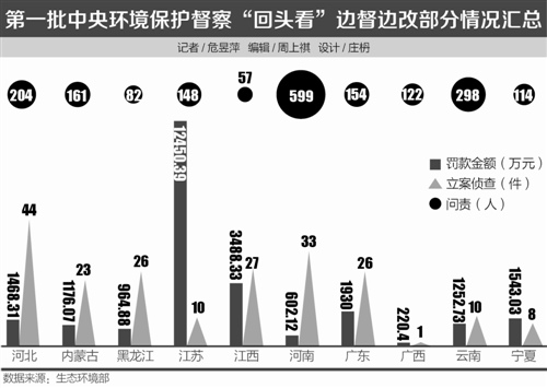 首批中央環(huán)保督察“回頭看”:?jiǎn)栘?zé)近兩千人 十省區(qū)共罰款2.5億