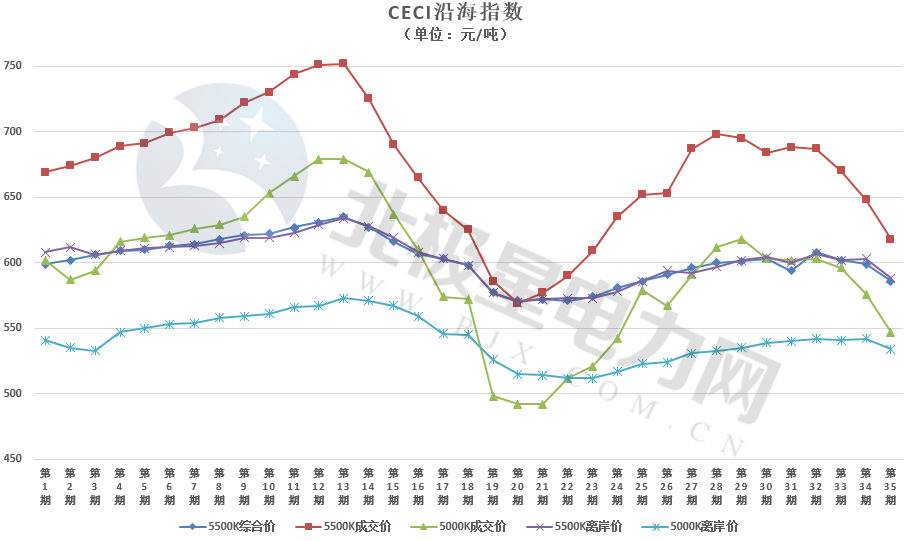 今日,中電聯(lián)公布中國(guó)沿海電煤采購(gòu)價(jià)格指數(shù)(CECI沿海指數(shù))第35期數(shù)據(jù):
