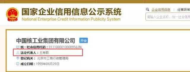 通過“國家企業(yè)信用信息公示系統(tǒng)”查詢顯示,公司制改制后,中國核工業(yè)集團有限公司董事長、法定代表人為王壽君;錢智民為公司董事。另外,公示系統(tǒng)也顯示了其他主要管理人員信息。