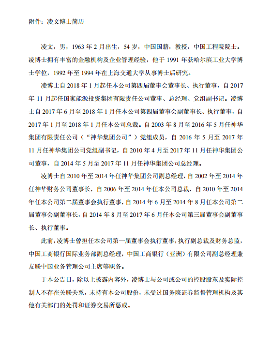重磅|中國(guó)神華公布一把手最新任命:凌文擔(dān)任董事長(zhǎng)