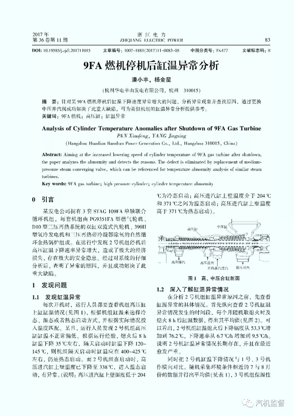 9FA燃機停機后缸溫異常分析