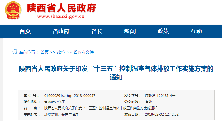 陜西省“十三五”控制溫室氣體排放工作實施方案